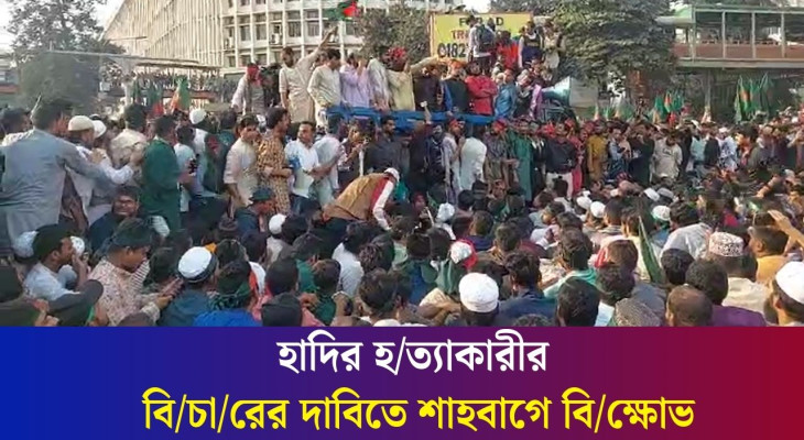শোক-ক্ষোভে উত্তাল শাহবাগ, ‘হাদি, হাদি’ স্লোগান প্রতিধ্বনিত