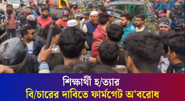 তেজগাঁও কলেজ শিক্ষার্থী সাকিব হ/ত্যায় জড়িতদের বি/চারের দাবিতে ফার্মগেট অ'বরোধ