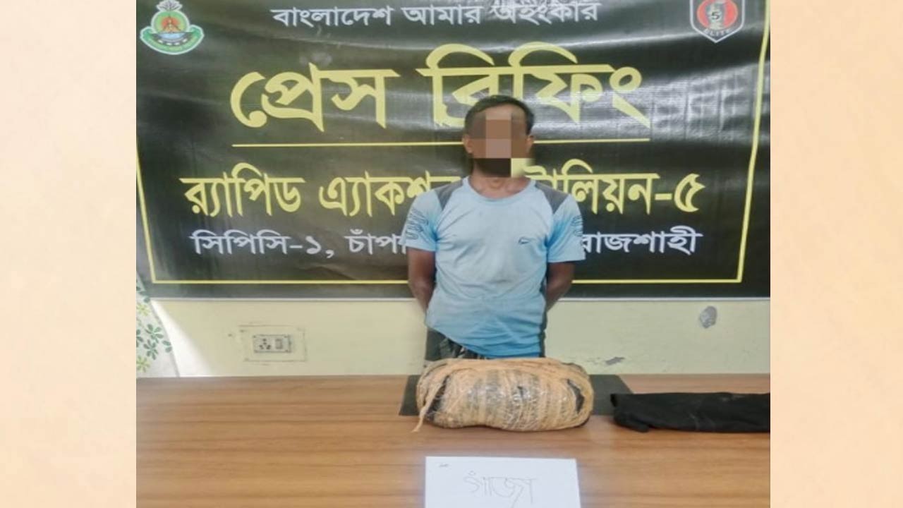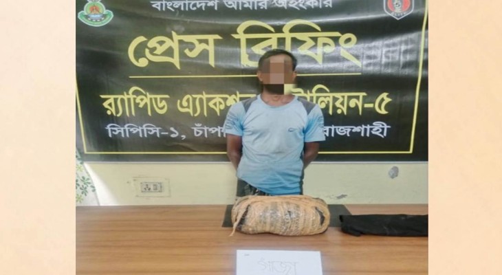 চাঁপাইনবাবগঞ্জে র‌্যাবের হাতে গাঁজাসহ গ্রেফতার ১