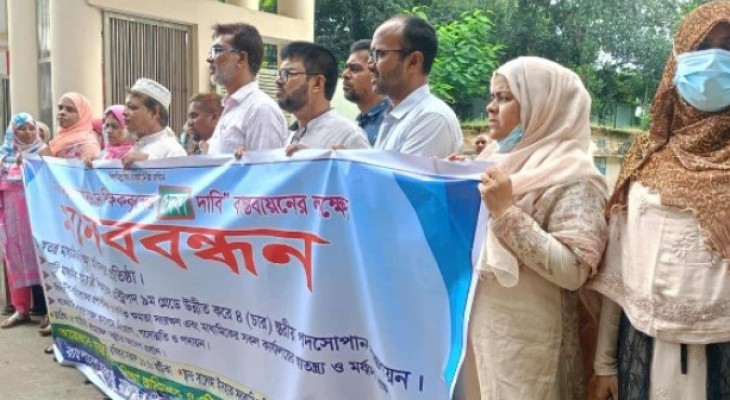 সিরাজগঞ্জে মাধ্যমিক শিক্ষক সমিতির ৫ দফা দাবিতে মানববন্ধন