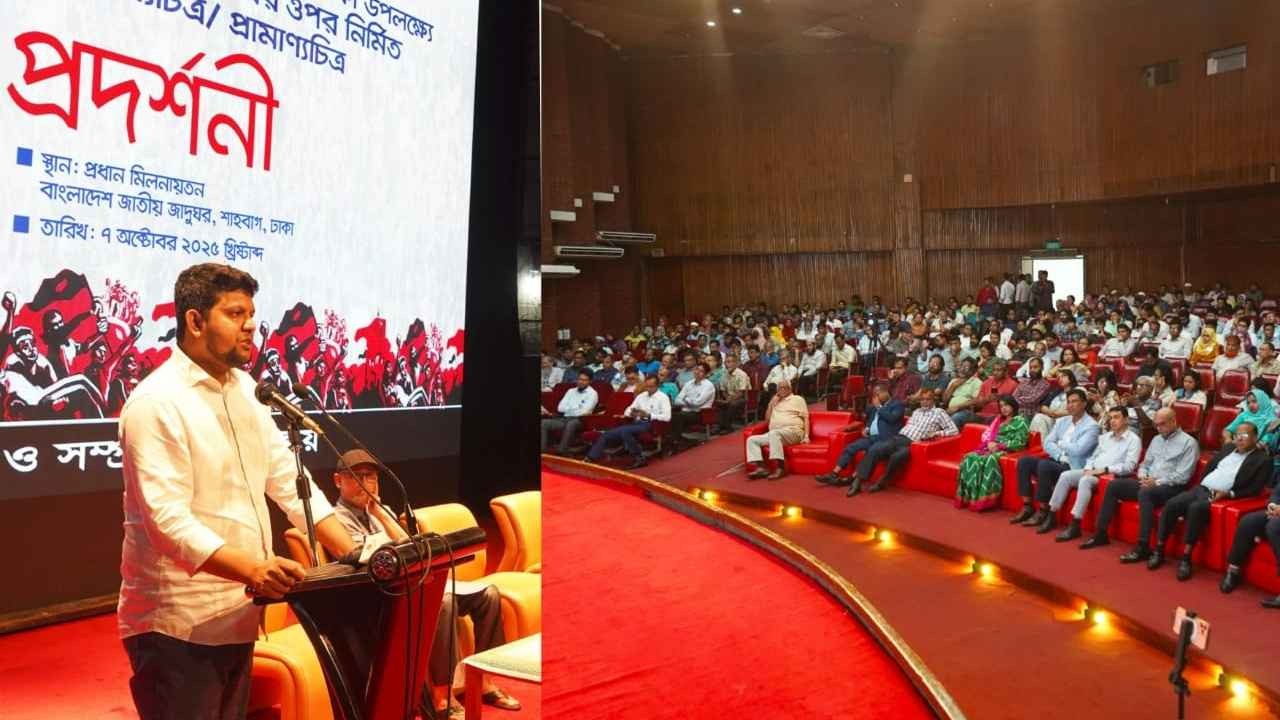 আরও পড়ুনঅনুষ্ঠানে উপস্থিত সংস্কৃতি বিষয়ক উপদেষ্টা মোস্তফা সরয়ার ফারুকী বলেন, ২০১৯ সালে বুয়েটে ছাত্রলীগের একাংশ আবরার ফাহাদকে হত্যা করেছে। তারা মনে করেছিল, আবরারের হত্যা করে আধিপত্যবিরোধী কণ্ঠ স্তব্ধ করা যাবে। তবে ইতিহাস প্রমাণ করে, এমন কণ্ঠ কখনো স্তব্ধ করা যায় না।