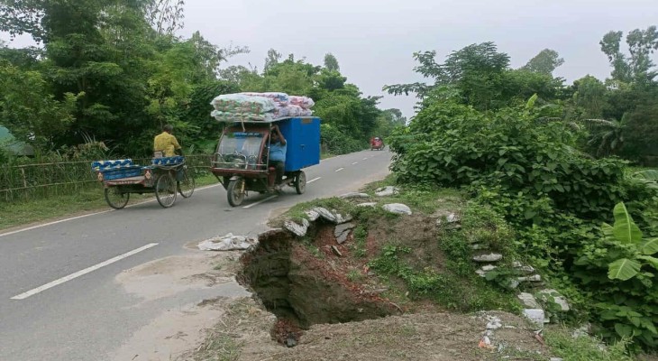 গাইবান্ধার সুন্দরগঞ্জ-ভাসানী সেতুর সংযোগ সড়কের গর্ত যেন মরণ ফাঁদ