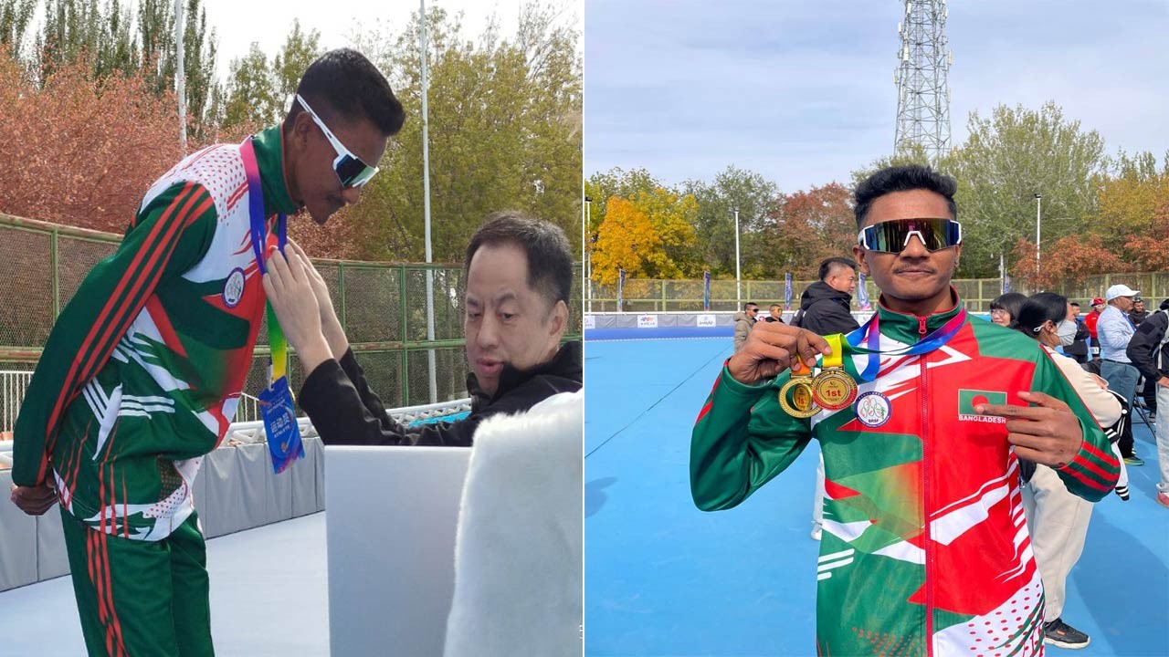 চীনে স্পিড রোলার স্কেটিং টুর্নামেন্টে বগুড়ার পৃথিবীর জোড়া স্বর্ণপদক অর্জন