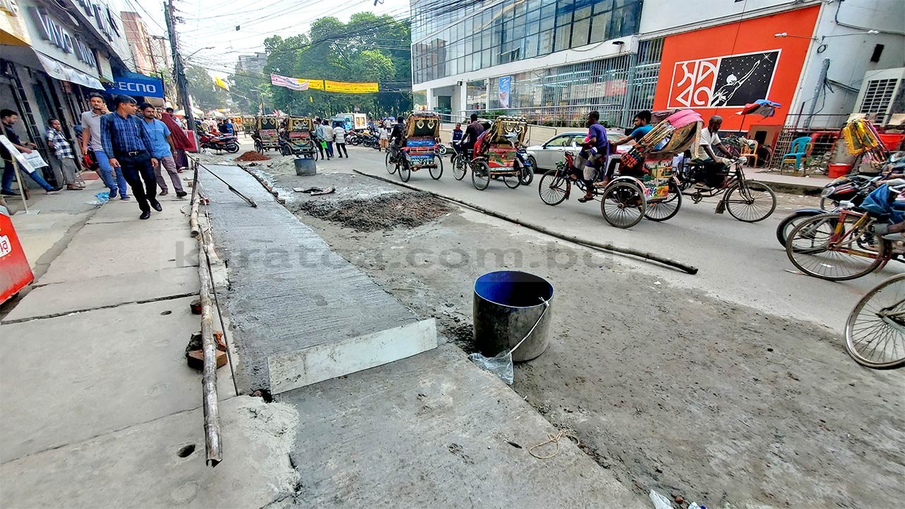 শেখ সরিফ উদ্দিন সুপার মার্কেটের সামনে রাস্তা দখল করে ঢালাই করা হচ্ছে