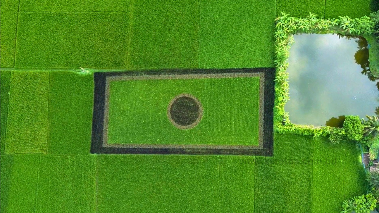 প্রায় ৪৫ শতক জমিতে দুই জাতের ধান চাষ করে ইমরান গড়ে তুলেছেন এই অনন্য ক্ষেত। সবুজ অংশে ব্যবহার করেছেন পাকিস্তানি লং বাসমতী ধান, আর মাঝের লাল সূর্যের জায়গায় রোপণ করেছেন বেগুনি রঙের পারপোল রাইস। তাঁর এই ভাবনাটা এসেছে দেশপ্রেম থেকেই।