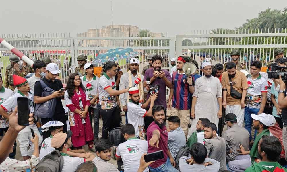 তিন দাবিতে সংসদ ভবনের গেটে জুলাই যোদ্ধারা