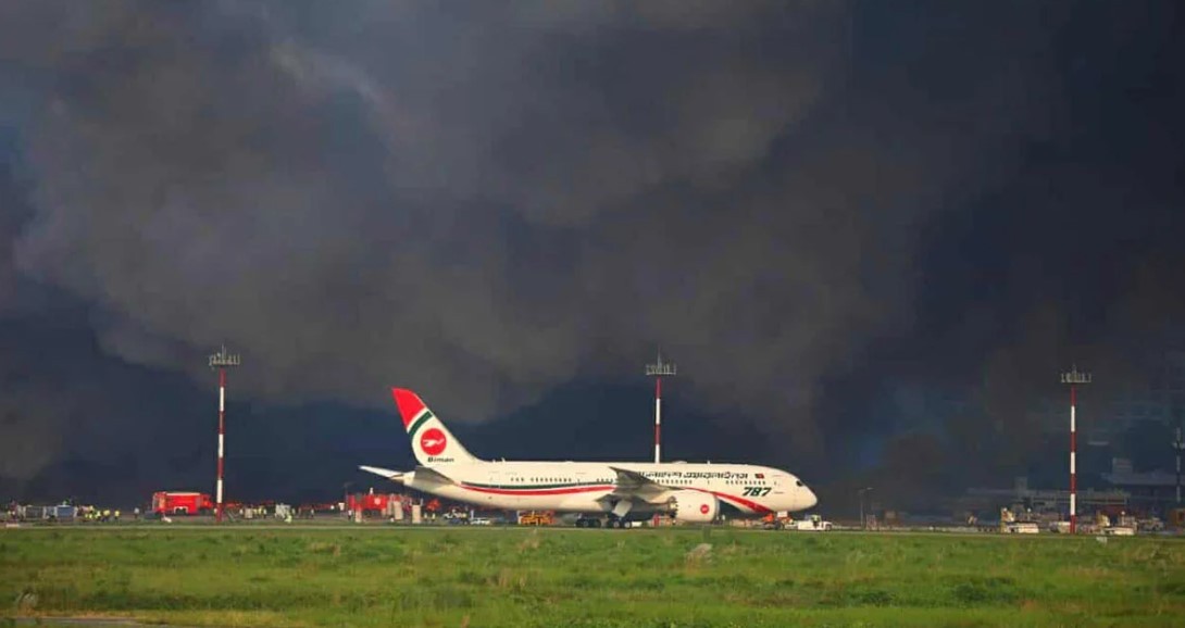 আরও পড়ুনবাংলাদেশ সিভিল অ্যাভিয়েশনসহ বাংলাদেশ ফায়ার সার্ভিস এবং বাংলাদেশ বিমান বাহিনীর দুটি ফায়ার ইউনিট অগ্নিনির্বাপণে সর্বাত্নক প্রচেষ্টা চালিয়ে যাচ্ছে।