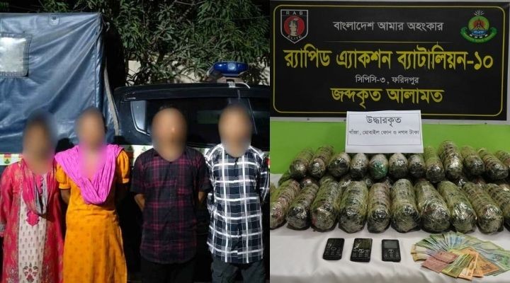 ফরিদপুরে ২০ কেজি গাঁজাসহ গ্রেফতার ৪