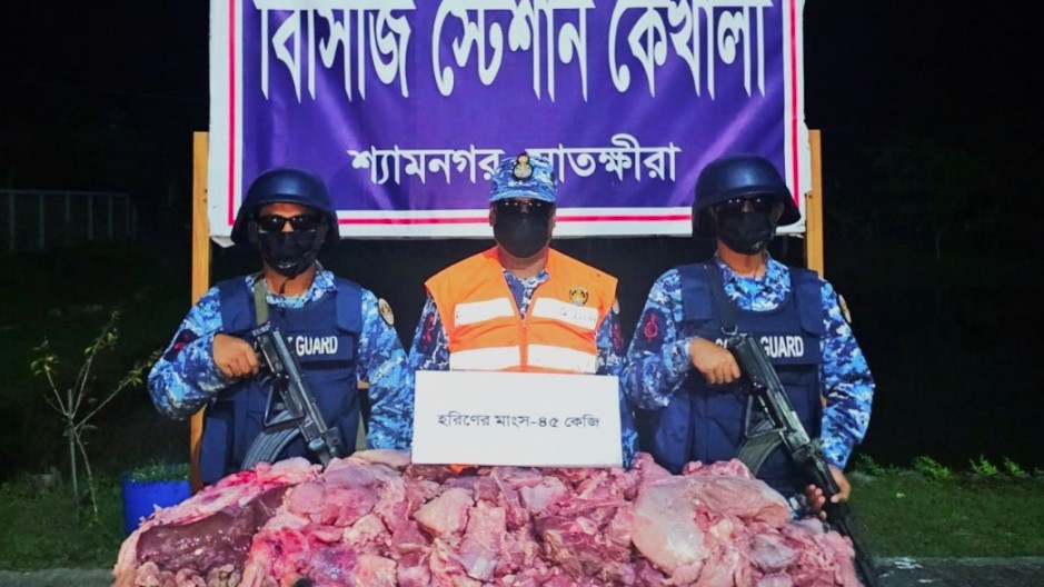 সাতক্ষীরার শ্যামনগরে অভিযান চালিয়ে ৪৫ কেজি হরিণের মাংস ও ১২টি পা জব্দ করেছে কোস্টগার্ড।
