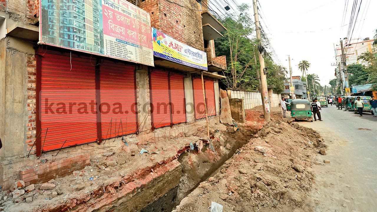 বগুড়া চেলোপাড়ায় সড়কের জায়গা দখল করে সেপটিক ট্যাঙ্ক নির্মাণ করার অভিযোগ