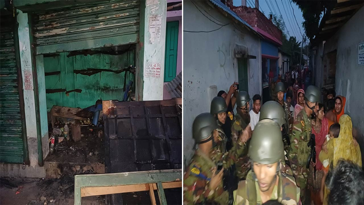 এতে বাড়ি ঘরের বিভিন্ন আসবাব পত্রসহ মূল্যবান মালামাল ভস্মিভূত হয়। আগুনে দোকানের মালামালও পুড়ে যায়। স্থানীয়রা জানান,এলাকায় থমথমে ভাব বিরাজ করছে। বর্তমানে এলাকায় অতিরিক্ত পুলিশ ও সেনাবাহিনীর টহল জোরদার করা হয়েছে।