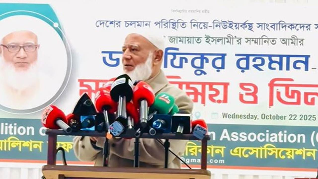 দেশের চলমান পরিস্থিতি প্রসঙ্গে আয়োজিত মতবিনিময় সভায় অংশ নেন নিউ ইয়র্কে অবস্থানরত বাংলাদেশি সাংবাদিকরা। যুক্তরাষ্ট্র সফরে দেশটির কোনো শীর্ষ রাজনৈতিক নেতার সঙ্গে আলোচনা হতে যাচ্ছে কি না-এমন প্রশ্নের জবাবে জামায়াতের আমির বলেন, ‘এই প্রশ্নটি বৃহত্তর স্বার্থে এড়িয়ে যাচ্ছি।’
