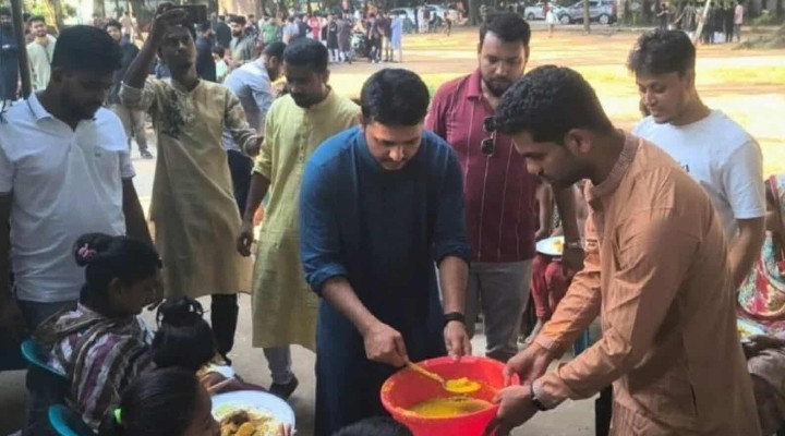 শুক্রবার (২৪ অক্টোবর) দুপুরে বিশ্ববিদ্যালয়ের হাকিম চত্বরে এই আয়োজন অনুষ্ঠিত হয়। আয়োজনে ক্যাম্পাসের বিভিন্ন স্থানে থাকা পথশিশুদের জন্য রান্না করা খাবার পরিবেশন করা হয়। দুপুরের এই খাবারে অংশ নেয় প্রায় ৫০ জন পথশিশু। তাদের সঙ্গে আনন্দ ভাগ করে নিতে উপস্থিত ছিলেন ছাত্রদলের কেন্দ্রীয় ও ঢাবি ইউনিটসহ বিভিন্ন ইউনিটের নেতাকর্মীরা।