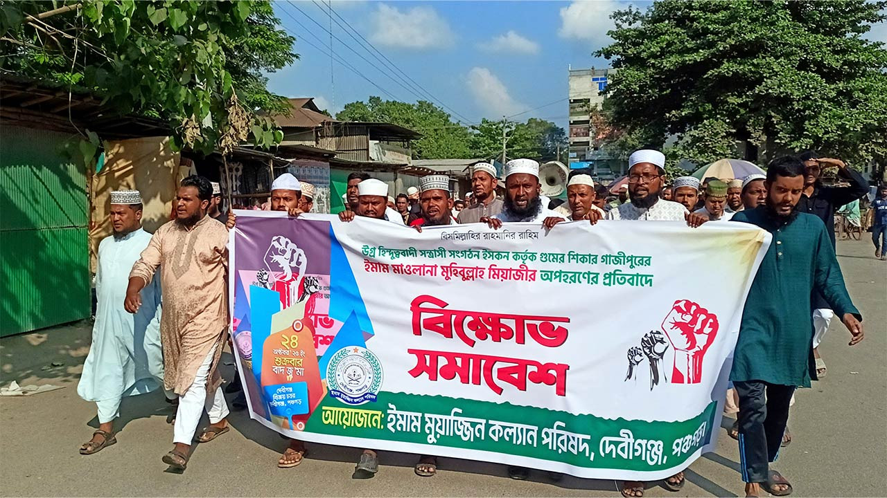 আজ শুক্রবার (২৪ অক্টোবর) জুমার নামাজ শেষে দেবীগঞ্জ বাজার জামে মসজিদের সামনে থেকে উপজেলা ইমাম মুয়াজ্জিন কল্যাণ পরিষদের ব্যানারে একটি বিক্ষোভ মিছিল বের হয়ে পৌরসভার গুরুত্বপূর্ণ সড়ক প্রদক্ষিণ শেষে বিজয় চত্বরে এসে শেষ হয়। এতে পৌরসভার বিভিন্ন মসজিদের ইমাম, মুয়াজ্জিন ও মুসল্লিরা অংশ নেন। পরে বিজয় চত্বরে একটি সংক্ষিপ্ত সমাবেশ অনুষ্ঠিত হয়।