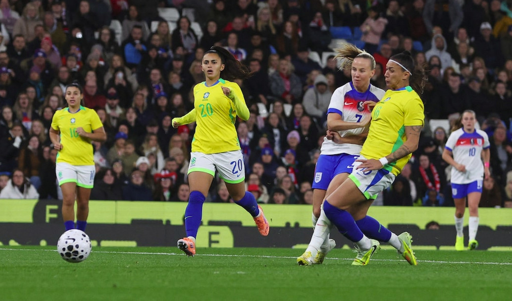 জাপানের বিপক্ষে জয় দিয়ে সাম্প্রতিক সময়ে প্রীতি ম্যাচের মিশন শুরু করেছিল ব্রাজিল নারী দল। গতকাল (শনিবার) ম্যানচেস্টার সিটির মাঠ ইতিহাদে তারা মুখোমুখি হয় ইউরোপসেরা দল ইংল্যান্ডের। ম্যাচে স্বাগতিকদের শুরুটা হয়েছিল বাজেভাবে। ২০ মিনিটেই তারা দুইবার গোল হজম করে। বিয়া জানেরাত্তো এবং দুদিনহা গোল করেন ব্রাজিলের পক্ষে। দ্বিতীয়ার্ধে পেনাল্টিতে এক গোল শোধ করেন ইংল্যান্ডের জর্জিয়া স্টানওয়ে। ব্রাজিলকে ম্যাচের বড় একটি অংশজুড়েই ১০ জনকে নিয়ে খেলতে হয়েছে। এই অবস্থায় লিড ধরে রেখে ম্যাচ শেষ করার মতো বীরত্ব দেখিয়েছে সেলেসাও মেয়েরা।
