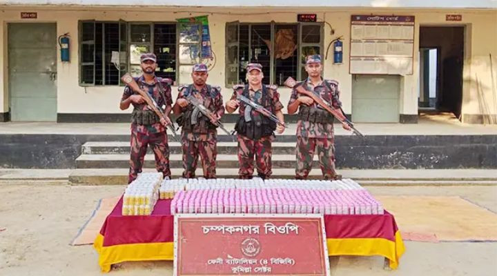 আরও পড়ুনবিজিবি ফেনী ব্যাটালিয়নের অধিনায়ক লেফটেন্যান্ট কর্নেল মোশারফ হোসেন বলেন, সীমান্তে নিরাপত্তা রক্ষা, মাদকের অবৈধ পাচার ও চোরাচালান প্রতিরোধসহ অবৈধ অনুপ্রবেশ রোধে বিজিবির আভিযানিক কর্মকাণ্ড ও গোয়েন্দা তৎপরতা অব্যাহত রয়েছে।