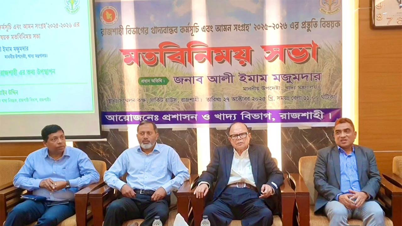 রাজশাহী প্রতিনিধি : দেশের খাদ্য ভান্ডার হিসেবে রাজশাহী ও রংপুর অঞ্চলকে উল্লেখ করে খাদ্য ও ভূমি উপদেষ্টা আলী ইমাম মজুমদার বলেছেন, চলতি মৌসুমে আমনের ফলন আশানুরূপ হবে এবং আগামী মধ্য নভেম্বর থেকেই খাদ্য সংগ্রহ অভিযান শুরু হবে।