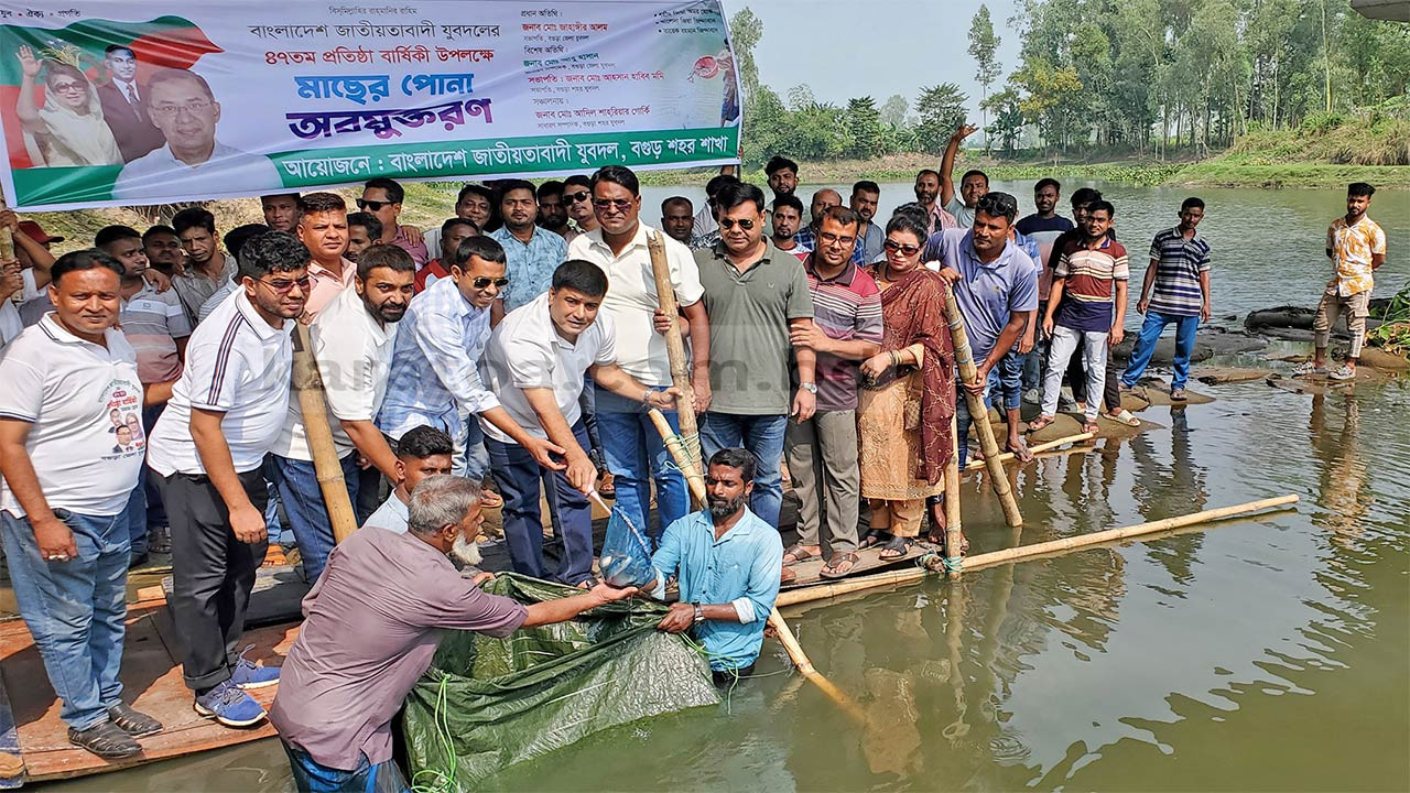 বগুড়ায় যুবদলের প্রতিষ্ঠা বার্ষিকী উপলক্ষে নদীতে মাছের পোনা অবমুক্তকরণ