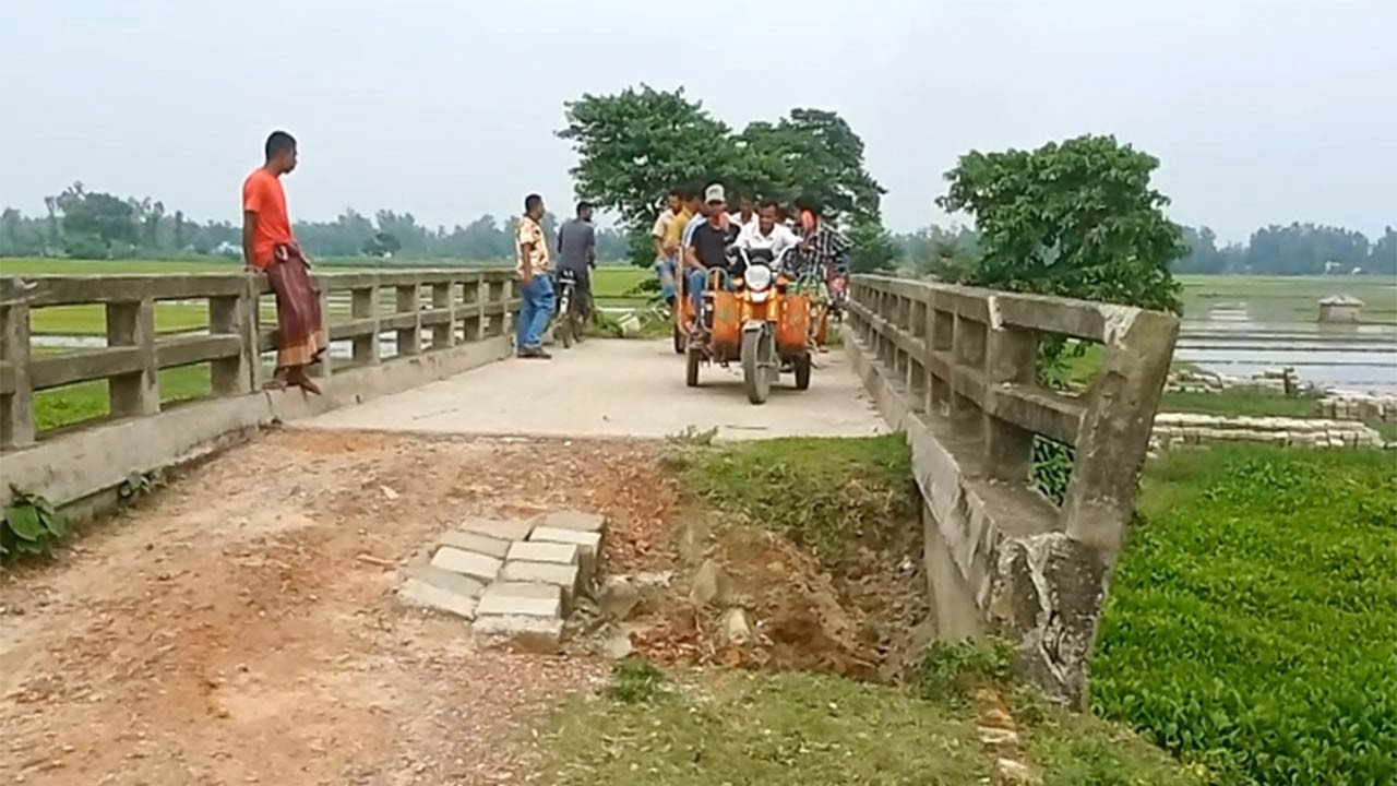 বগুড়ার সোনাতলায় সুজাইতপুর-বালুয়াহাট সড়কে ব্রিজের এপ্রোচে মাটি না থাকায় যান চলাচল ব্যাহত