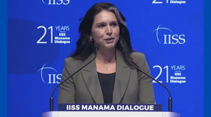 স্থানীয় সময় শুক্রবার (৩১ অক্টোবর) বাহরাইনে অনুষ্ঠিত বার্ষিক নিরাপত্তা সম্মেলন ‘মানামা সংলাপে’ যুক্তরাষ্ট্রের নয়া পররাষ্ট্রনীতি নিয়ে তুলসী গ্যাবার্ড এসব কথা বলেন। আন্তর্জাতিক নিরাপত্তা গবেষণা সংস্থা ইন্টারন্যাশনাল ইনস্টিটিউট অব সিকিউরিটি স্টাডিজ (আইআইএসএস) এ সংলাপের আয়োজন করে।