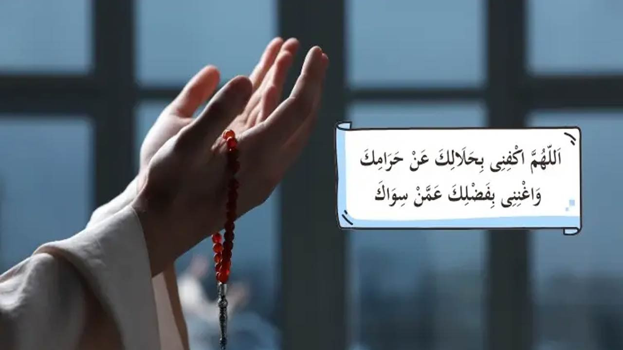 অর্থ: হে আল্লাহ! হারামের পরিবর্তে আপনার হালাল রিজিক আমার জন্য যথেষ্ট করুন। আপনি ছাড়া অন্য সবার অমুখাপেক্ষিতা থেকে আমাকে মুক্তি দিন।