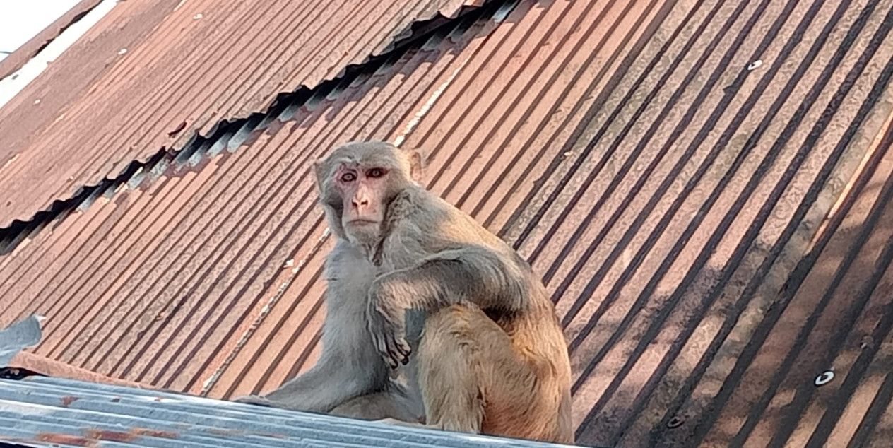 বনের হনুমান বাড়ির চালে ছোটাছুটি করে পড়েছে  বিপাকে