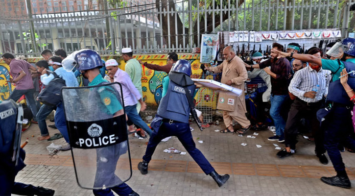 তিন দফা দাবি আদায়ে রাজধানীর শাহবাগে আন্দোলনরত প্রাথমিক শিক্ষকদের ওপর লাঠিচার্জ, জলকামান, সাউন্ড গ্রেনেড ব্যবহার করে তাদের ছত্রভঙ্গ করেছে পুলিশ। এ সময় শিক্ষক, পুলিশ ও রিকশাচালকসহ শতাধিক আহত হয়েছেন। তাদেরকে ঢাকা মেডিকেলের জরুরী বিভাগে চিকিৎসা দেওয়া হচ্ছে।