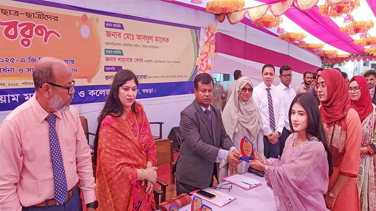 তিনি এই প্রতিষ্ঠানের সফলতায় শিক্ষক-শিক্ষার্থী, অভিভাবকসহ সকলের অবদানে কৃতজ্ঞতা প্রকাশ করে আগামীতেও এই সফলতা অব্যাহত রাখার আহ্বান জানান। আজ শনিবার (৮ নভেম্বর) সকালে বগুড়া বিয়াম মডেল স্কুল ও কলেজের একাদশ শ্রেণির শিক্ষার্থীদের নবীনবরণ ও ২০২৫ সালে এইচএসসি পরীক্ষায় জিপিএ-৫ প্রাপ্ত কৃিত শিক্ষার্থীদের সংবর্ধনা অনুষ্ঠানে প্রধান অতিথির বক্তব্যে তিনি এসব কথা বলেন।