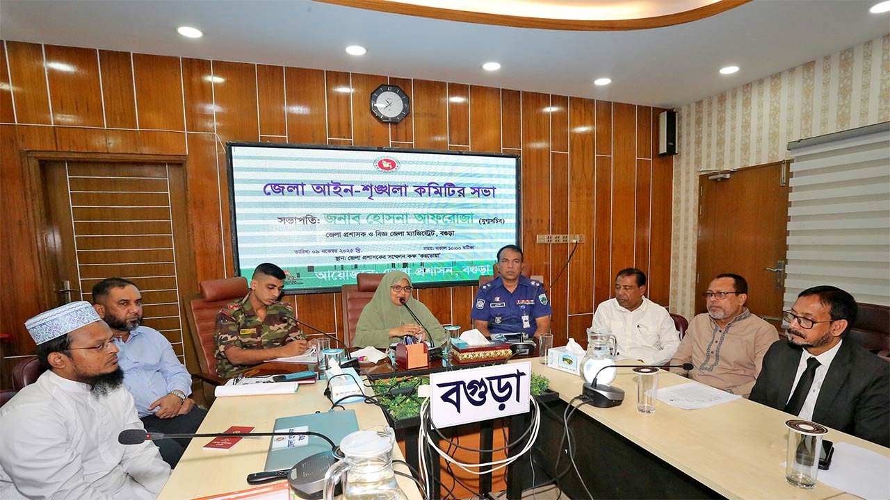 সভায় পুলিশ সুপার জেদান আল মুসা শাজাহানপুরে তিন গরুকে ছুরিকাঘাত করা, আদমদীঘিতে বিড়ালকে কেটে ফেলা, পুকুরে বিষ দেওয়ার মত কাজ থেকে বিরত থাকার জন্য সকলের প্রতি আহবান জানান। জেলা প্রশাসক তার বক্তব্যে বগুড়াবাসীর সহায়তার কথা উল্লেখ করে বলেন, তার মেয়াদকালে বগুড়ায় রাজনৈতিক কোন সহিংসতা ঘটেনি।