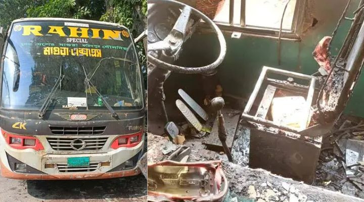 যশোরে থেমে থাকা বাসে দুর্বৃত্তদের আগুন