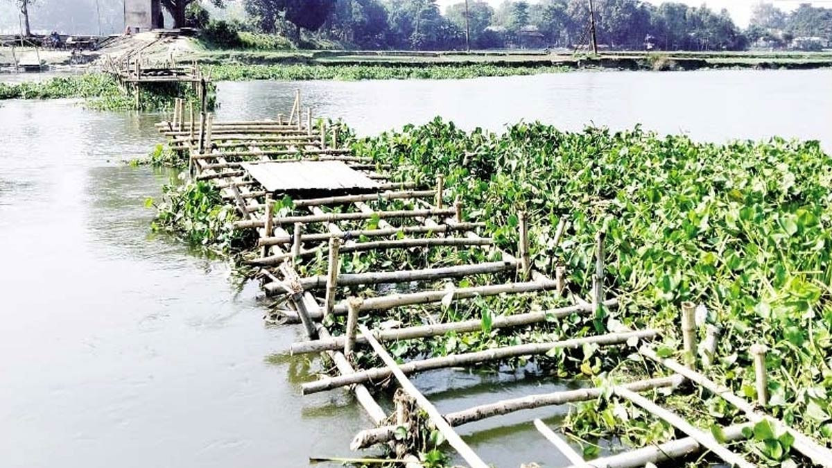 নওগাঁর রাণীনগরে ছোট যমুনা নদীর ওপর লক্কর-ঝক্কর বাঁশের সাঁকো