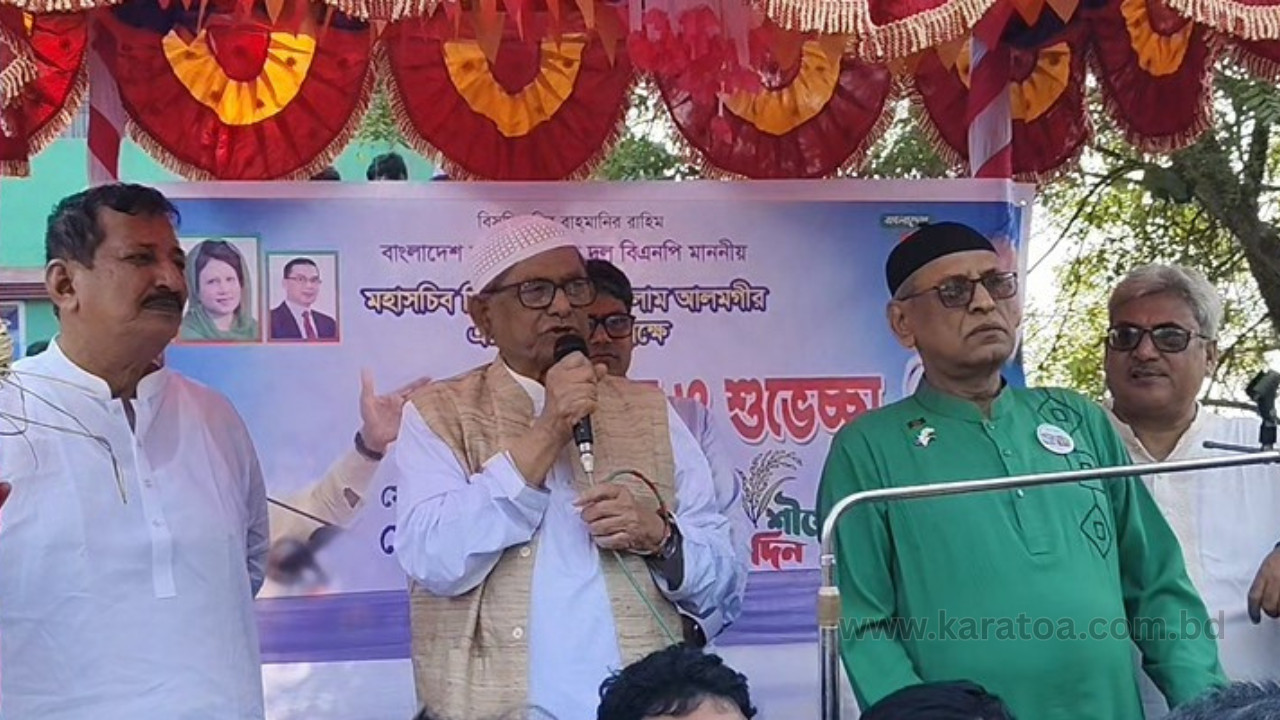 আজ শনিবার (১৫ নভেম্বর) সকালে রাজশাহীর গোদাগাড়ীতে প্রয়াত বিএনপি নেতা ব্যারিস্টার আমিনুল হকের কবর জিয়ারত শেষে এক সমাবেশে এ আহ্বান জানান তিনি। এসময় তিনি রাজশাহী-১ (গোদাগাড়ী-তানোর) আসনে বিএনপি’র প্রাথমিক মনোনয়ন পাওয়া প্রার্থী মেজর জেনারেল (অব.) শরিফ উদ্দিনকে নেতাকর্মীদের সঙ্গে পরিচয় করিয়ে দিয়ে তার পক্ষে থাকার আহ্বান জানান। মির্জা ফখরুল ইসলাম আলমগীর বলেন, একটা দল বিএনপিতে বিভেদ সৃষ্টি করার চেষ্টা করছে। এর মাধ্যমে তারা ফায়দা নিতে চায়। এ ব্যাপারে বিএনপি নেতাকর্মীদের সতর্ক থাকতে হবে। নিজেদের মধ্যে দ্বন্দ্ব বিভাজন সৃষ্টি করা যাবে না। তিনি বলেন, আরেকটা দল ক্ষমতায় যাওয়ার চেষ্টা করছে। আমাদের অতীত অভিজ্ঞতা বলে এদের দ্বারা দেশের পরিবর্তন ও রাষ্ট্রের শৃঙ্খলা ফিরিয়ে আনা সম্ভব না।