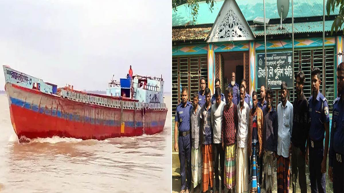 সিরাজগঞ্জের চৌহালীর যমুনা নদীতে বালু বোঝাই বাল্কহেডে চাঁদাবাজি গ্রেফতার ১০