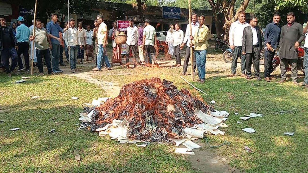 দিনাজপুরের নবাবগঞ্জে দলিল পোড়ানো হলো সাব-রেজিস্ট্রার অফিসে
