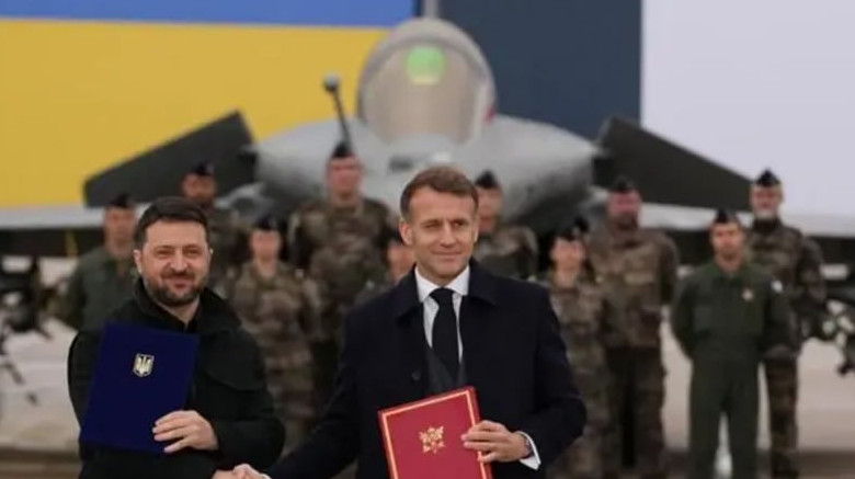 আন্তর্জাতিক ডেস্ক : রাশিয়ার ভয়াবহ আক্রমণ থেকে নিজেদের আত্মরক্ষার ক্ষমতা বাড়ানোর জন্য একটি বড় চুক্তির আওতায় ফ্রান্সের তৈরি ১০০টি রাফাল এফ-৪ যুদ্ধবিমান এবং উন্নত আকাশ প্রতিরক্ষা ব্যবস্থা পাচ্ছে ইউক্রেন। প্যারিসের কাছে একটি বিমান ঘাঁটিতে ফরাসি প্রেসিডেন্ট এমানুয়েল ম্যাক্রঁর সাথে একটি সম্মতিপত্রে স্বাক্ষর করার পর, এই পদক্ষেপকে ‘ঐতিহাসিক’ বলে স্বাগত জানিয়েছেন ইউক্রেনের প্রেসিডেন্ট ভলোদিমির জেলেনস্কি।