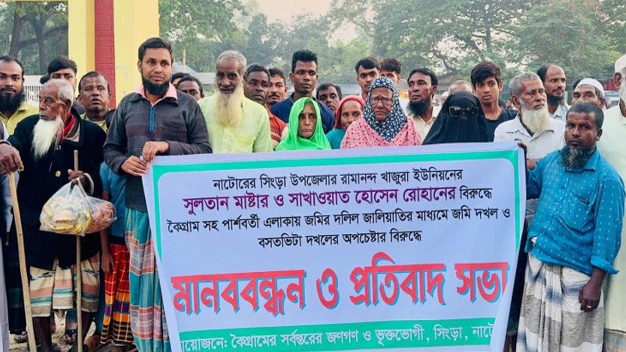 নাটোরের সিংড়ায় জমি দখলের অভিযোগ এনে ভুক্তভোগীদের মানববন্ধন
