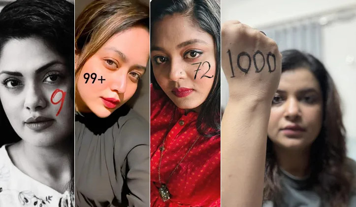 একই দিনে আশনা হাবিব ভাবনা তার একটি ছবি পোস্ট করেন। তাতে দেখা যায়, এ অভিনেত্রীর গালে লেখা, ‘৯৯’। ছবিটির ক্যাপশনে তিশার একই বার্তা লিখেছেন এই অভিনেত্রী। অভিনেত্রী শবনম ফারিয়াও তার একটি ছবি পোস্ট করেন। এ অভিনেত্রীর হাতে লেখা, ‘১০০০’। চিত্রনায়িকা দীঘিও তার একটি ছবি ফেসবুকে পোস্ট করেছেন। তাতে লেখা, ‘৩’। অভিনেত্রী মৌসুমী হামিদও নিজের ছবি পোস্ট করেছেন। তাতে দেখা যায়, তার গালে লেখা, ‘৭২’। ক্যাপশনে এ অভিনেত্রী লেখেন, “তারা বললেন, “এটা তো শুধু একটা মন্তব্য, এড়িয়ে চলুন। আমি উপেক্ষা করলাম-এক, দুই, তিনবার। কিন্তু থামেনি। সংখ্যা শুধু বাড়তেই থাকল। এটাই আমার গল্প, আর সেই গল্প শুরু হয় এই সংখ্যা দিয়ে। সংখ্যার পর সংখ্যা, তারপর কণ্ঠস্বর। এবার আমাদের কণ্ঠস্বরকে শোনাই। তোমার সংখ্যাটি শেয়ার করো, চলো একসঙ্গে দাঁড়াই ডিজিটাল সহিংসতার বিরুদ্ধে।”
