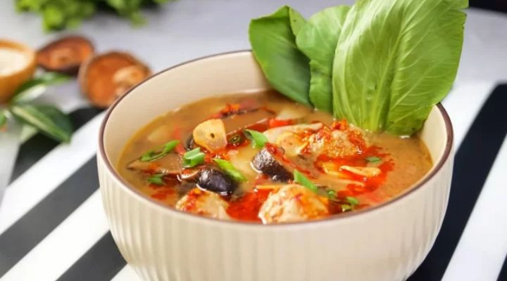 সুপের জন্য লাগবে চিকেন স্টক ৪ কাপ, সয়া সস ২ টেবিল চামচ, আপেল সিডার ভিনেগার ১/২ টেবিল চামচ, ব্রাউন সুগার ১/৪ চা-চামচ, শিটাকে মাশরুম ১ কাপ (গরম পানিতে ভিজিয়ে রাখা), গাজর (জুলিয়েন) ১/২ কাপ, বক চয় পাতা, চিলি অয়েল, পেয়াজপাতা কুচি এবং রসুন ভাজা।