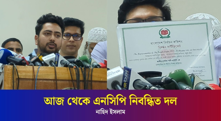 এনসিপির নিবন্ধন সার্টিফিকেট পেয়ে নাহিদের ধন্যবাদ জ্ঞাপন