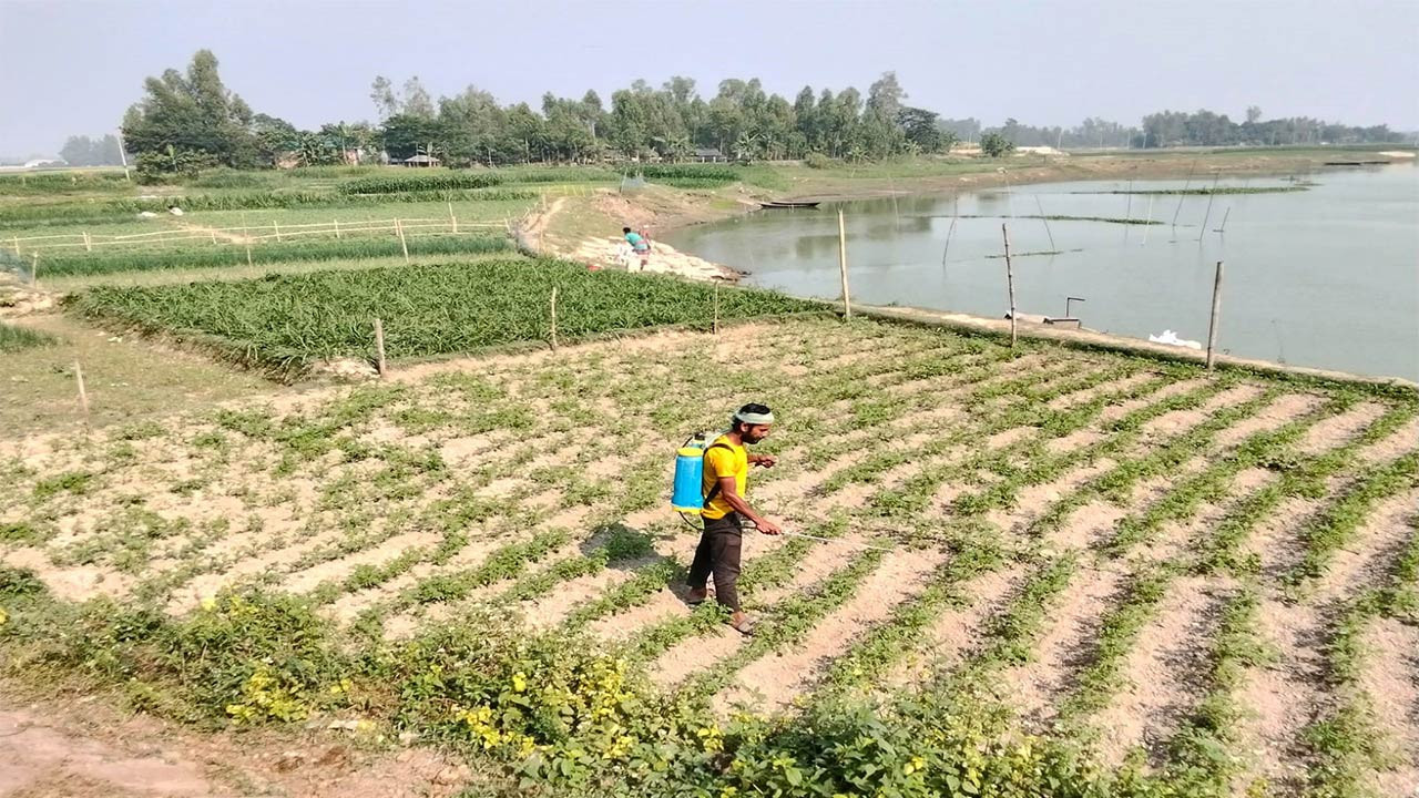 বগুড়া সোনাতলার নদীকূলীয় কৃষকরা বন্যার ধকল কাটিয়ে উঠতে রবি ফসলের পরিচর্যায় ব্যস্ত
