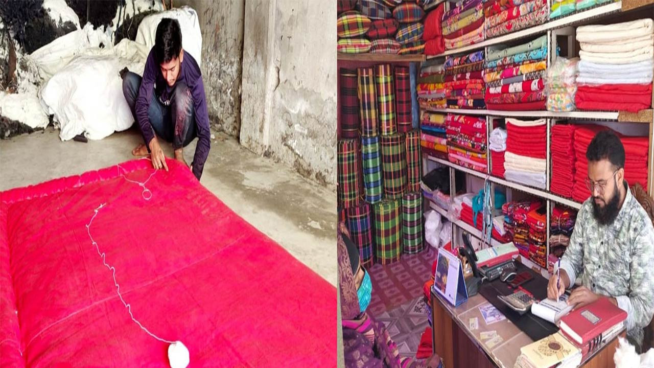 বগুড়ার নন্দীগ্রামে লেপ-তোষকের চাহিদা বেড়েছে, বাড়েনি কারিগরদের মজুরি