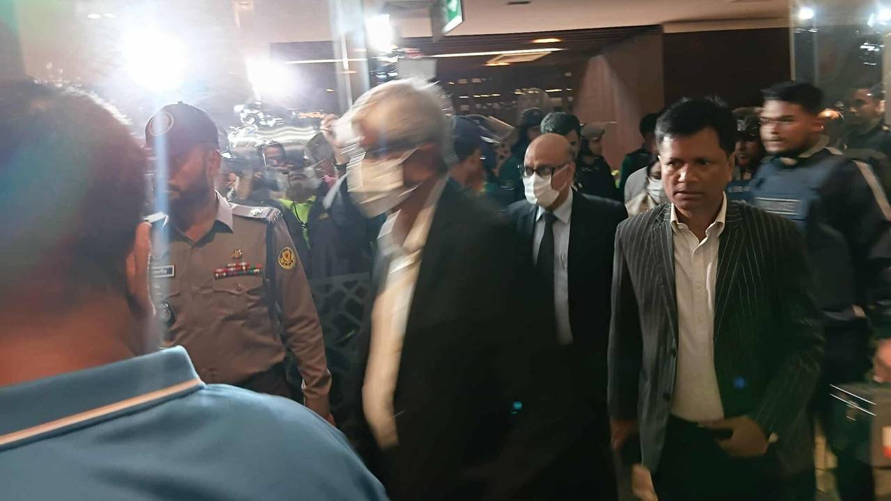 টানা ৬ ঘণ্টার বেশি সময় অবরুদ্ধ থাকার পর পুলিশি নিরাপত্তায় বের হচ্ছেন অর্থ উপদেষ্টা সালেহউদ্দিন আহমেদ।