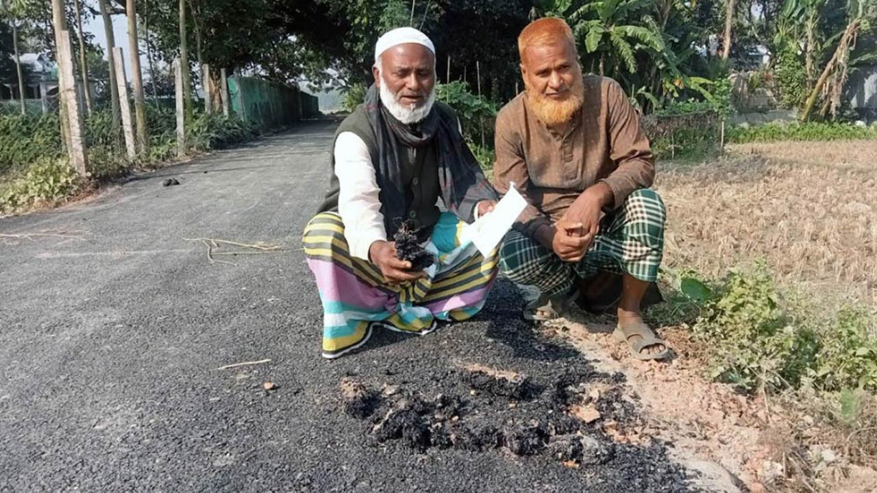 আরও পড়ুনজাহিদ হাসান সাগর নামে স্থানীয় এক যুবক বলেন, এই রাস্তার কাজে শুরু থেকেই ব্যাপক অনিয়ম-দুর্নীতি হয়ে আসছে। রাস্তার কার্পেটিংয়ে নিম্নমানের বিটুমিন ব্যবহার করা হচ্ছে। যে কারণে হাত দিলেই কার্পেটিং উঠে যাচ্ছে। আমরা এলাকার লোকজন ঠিকাদারকে ভালোভাবে কাজ করতে বললে তিনি কোনো কথা শোনেননি। তবে এ বিষয়ে ঠিকাদারের সঙ্গে যোগাযোগ করে তার বক্তব্য পাওয়া যায়নি।