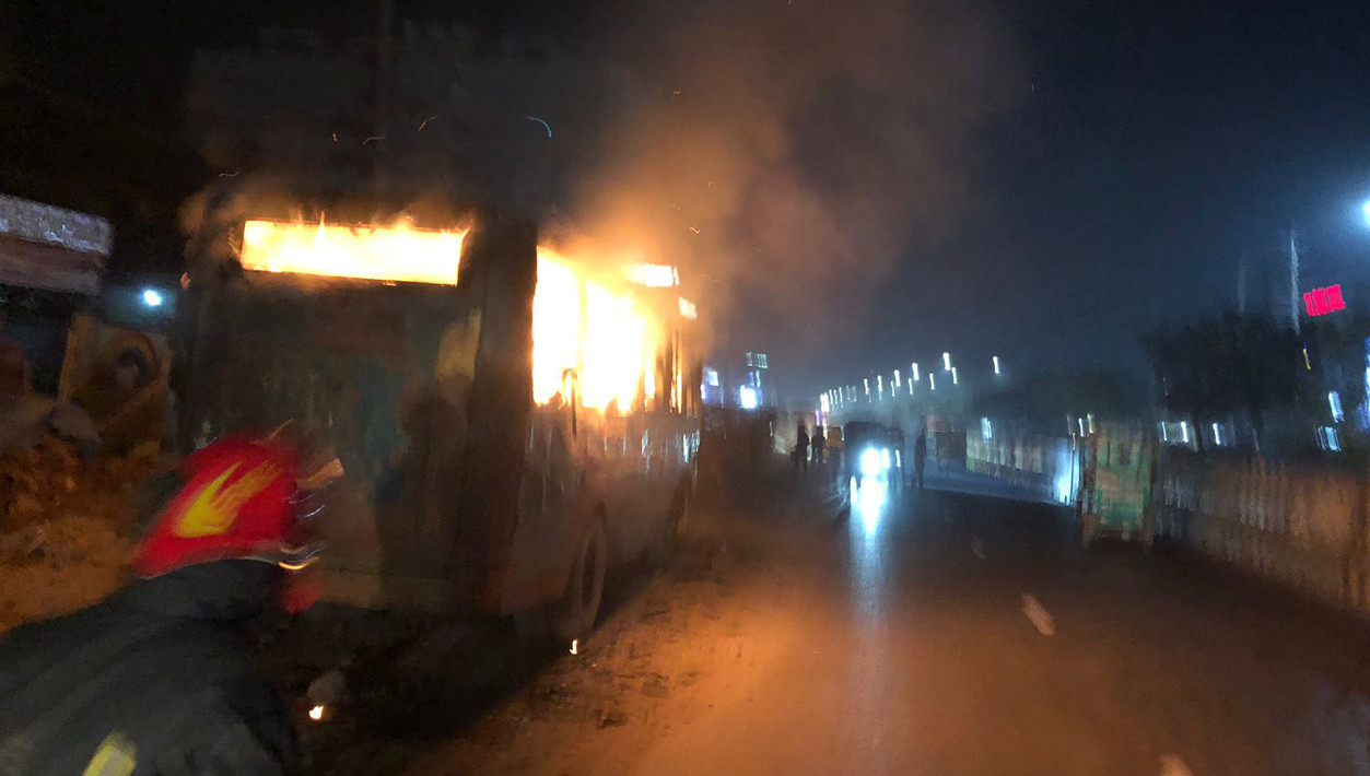 সাভারে বাসে আগুন