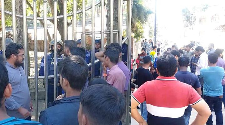ওসমান হাদি হত্যার প্রতিবাদে বান্দরবানে পুলিশ সুপার কার্যালয় ঘেরাও