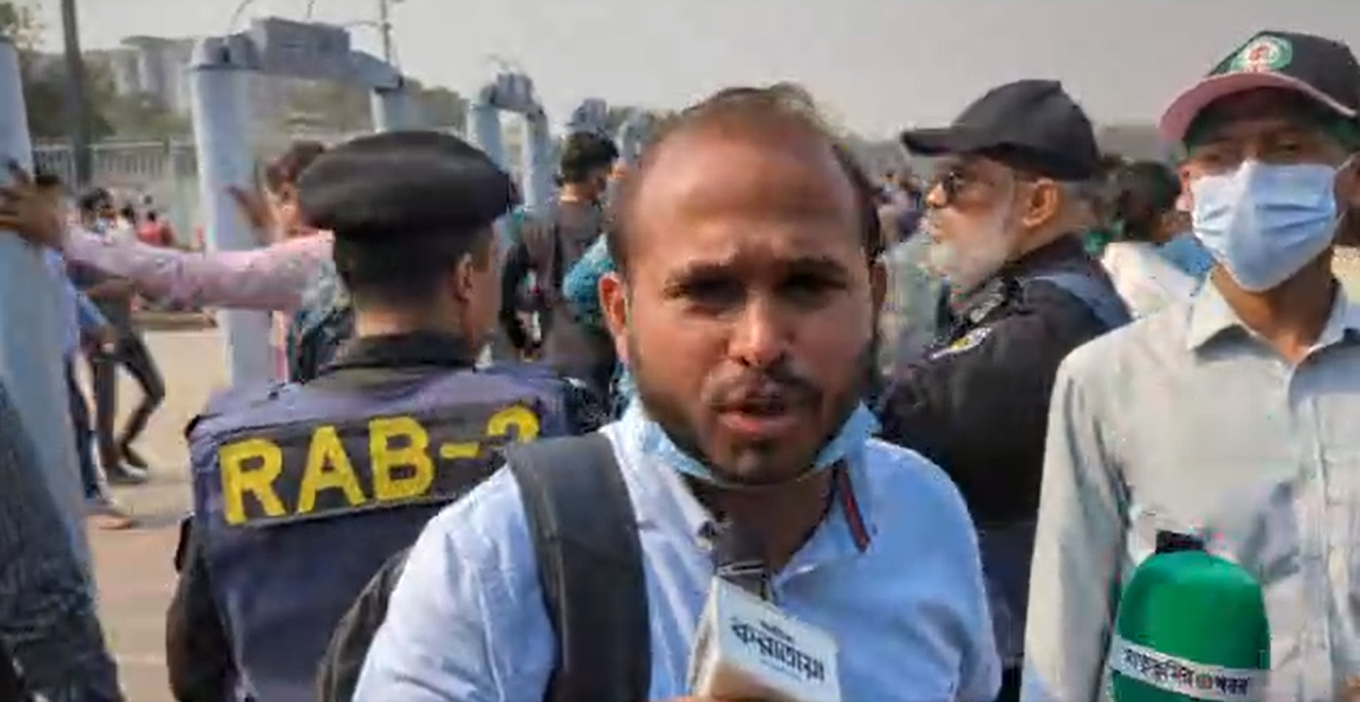 জানাজায় অংশগ্রহণের লক্ষ্যে প্রবেশের অপেক্ষায় সারিবদ্ধ হাজারো ছাত্র-জনতা