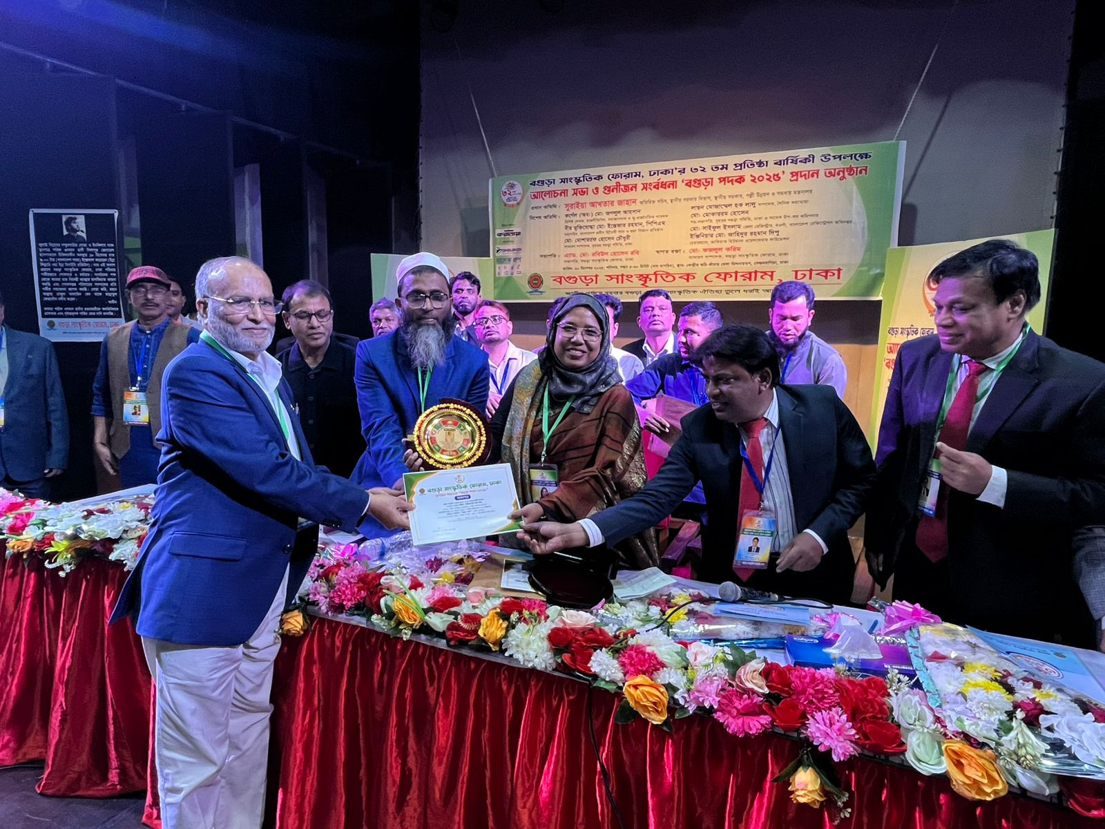 বগুড়া সাংস্কৃতিক ফোরাম, ঢাকা’র ৩২ তম প্রতিষ্ঠা বার্ষিকী উপলক্ষে ২০ ডিসেম্বর ২০২৫, শনিবার, সন্ধ্যা ৫.৩০ মিনিটে কেন্দ্রীয় কচি-কাঁচার মেলা মিলনায়তন ৩৭/এ, সেগুনবাগিচা, ঢাকায় আলোচনা সভা ও গুনীজন সংর্বধনা ‘বগুড়া পদক ২০২৫’ প্রদান অনুষ্ঠান অনুষ্ঠিত হয়। উক্ত অনুষ্ঠানে প্রধান অতিথি হিসেবে উপস্থিত ছিলেন স্থানীয় সরকার, পল্লী উন্নয়ন ও সমবায় মন্ত্রনালয়ের স্থানীয় সরকার বিভাগের অতিরিক্ত সচিব সুরাইয়া আখতার জাহান।
