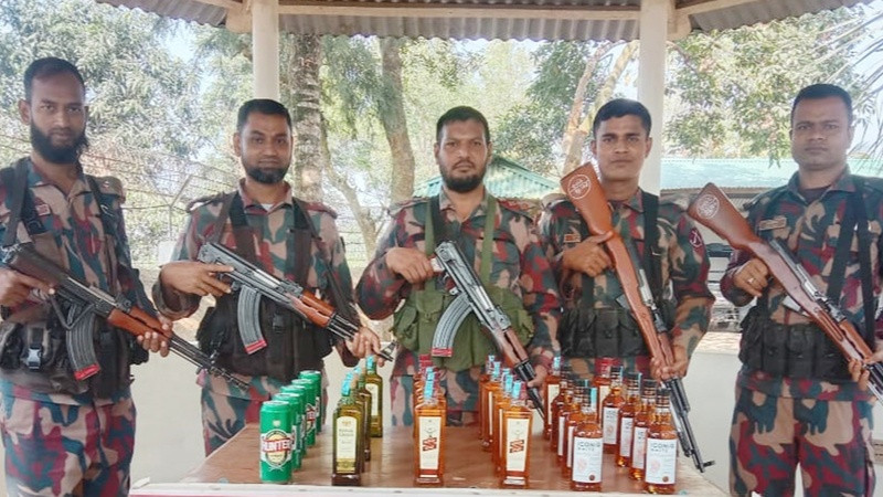 হবিগঞ্জ সীমান্ত এলাকায় ভারতীয় ২৪ বোতল মদ ও ৫ বোতল বিয়ার জব্দ করেছে বিজিবি