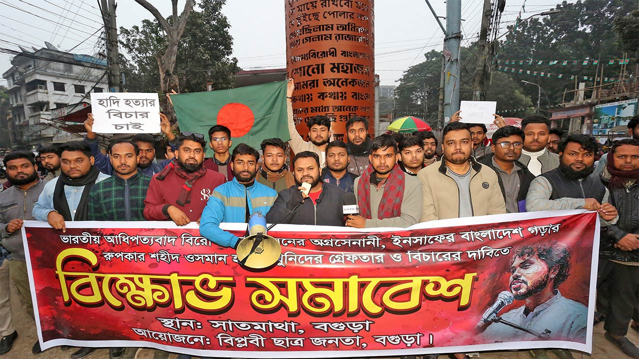 শহিদ হাদি হত্যার বিচারের দাবিতে বগুড়ায় বিক্ষোভ সমাবেশ
