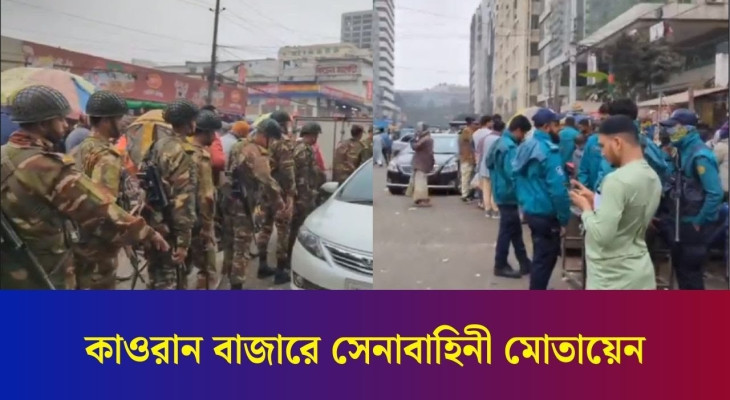 ব্যবসায়ীদের সাথে চাঁদাবাজদের ধাওয়া পাল্টা ধাওয়া কাওরান বাজারে সেনাবাহিনী মোতায়েন